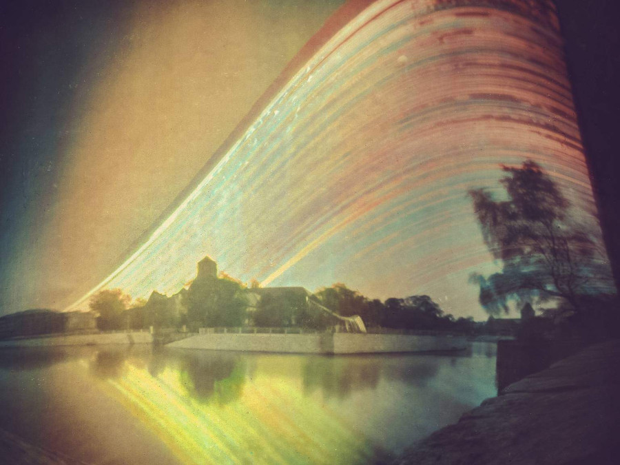 Solargraphy cameras must be left mounted in fixed outdoor locations for months, facing rain, strong winds, and extreme weather shifts. The final output consists of surreal images with color palettes naturally distorted by the long-term chemical reaction between the silver halides on the photo paper and ultraviolet radiation.