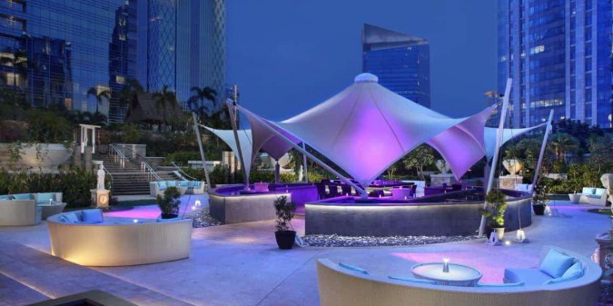 Terletak di kawasan Kemang, Anda tidak akan sulit menemukan SHY Rooftop karena lokasinya berada di gedung Papilion yang memiliki façade serba kaca. Tempat ini sering menyelenggarakan acara musik yang menampilkan musisi lokal terkemuka. Berada di SHY Rooftop, Anda bisa memilih mau duduk di lounge room yang beratapkan tenda besar berwarna putih di bagian luar, atau di bagian al fresco yang terletak di dalam. Soal minuman, Anda tidak akan kehabisan pilihan mulai dari cocktails hingga spirits. Sajian makanan lokal pun tersedia bagi Anda yang ingin mengisi perut. Dengan ambience yang menyenangkan, it’s definitely a place to go in Kemang!